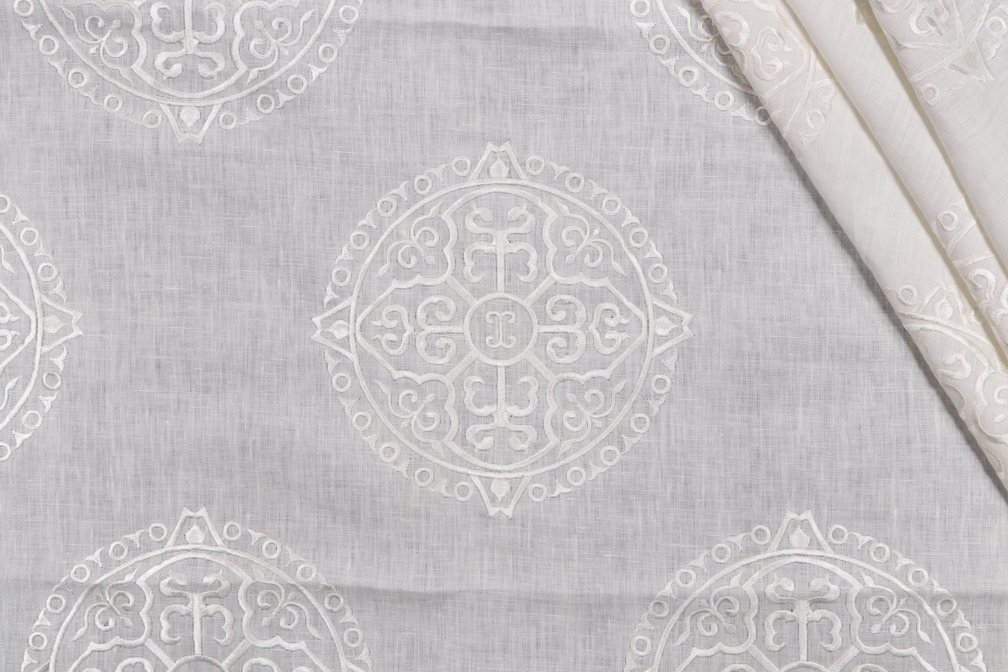 1.13 Yards Thibaut Halie W736127 Embroidered Drapery Fabric in White on Linen Details