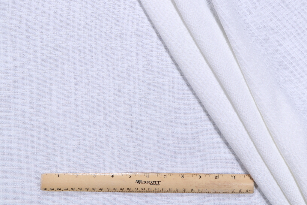 Mitchell Fabricut Thriller Woven Decorator Fabric in White is a remnant. Fabric remnants refer to leftover pieces of fabric from production runs at manufacturing sites or pieces that remain from by the yard stock. The lengths of these remnants can vary from a few inches to several yards and are typically sold at a reduced price, since they represent remaining inventory.