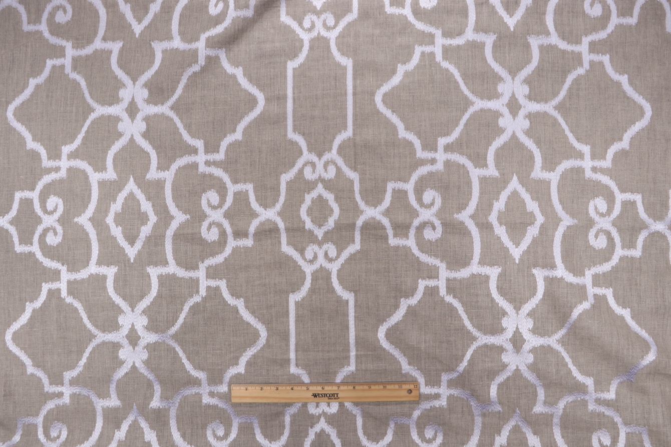 Thibaut Ogden W714210 Embroidered Linen Drapery Fabric in White on Natural is a remnant, which is sold as a whole piece.