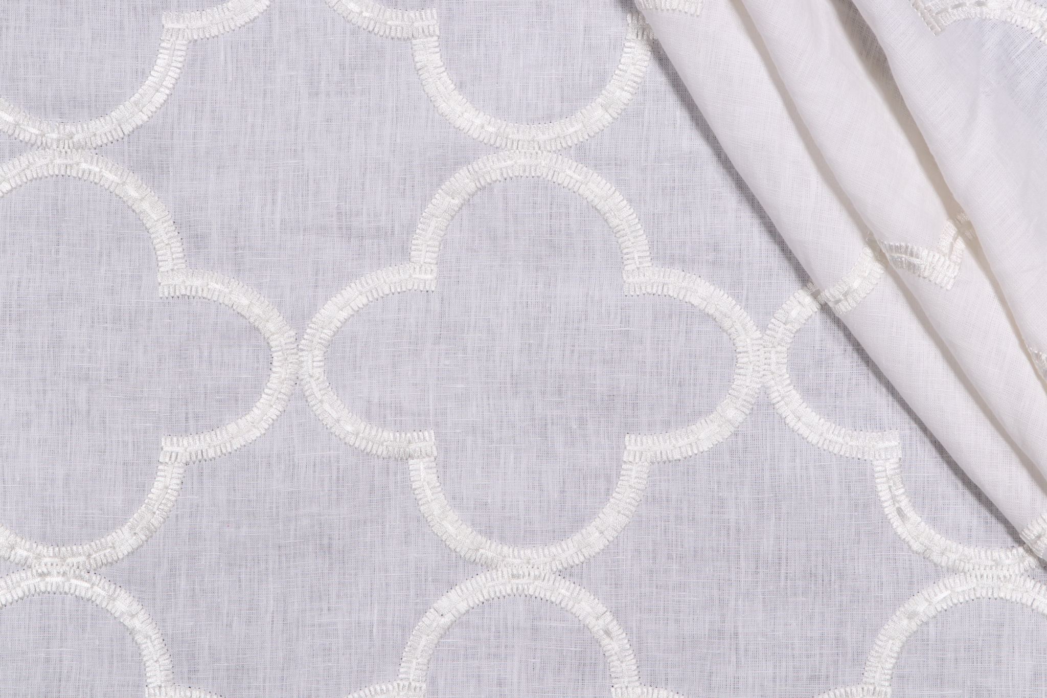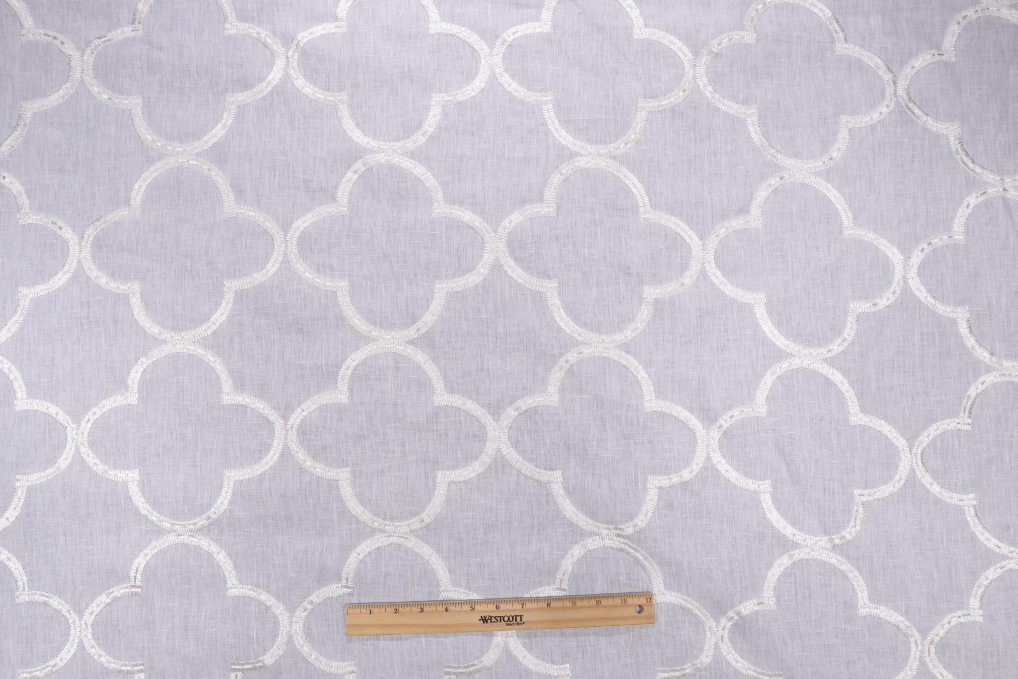 Thibaut Mara W716001 Embroidered Drapery Fabric in White is a remnant, which is sold as a whole piece.