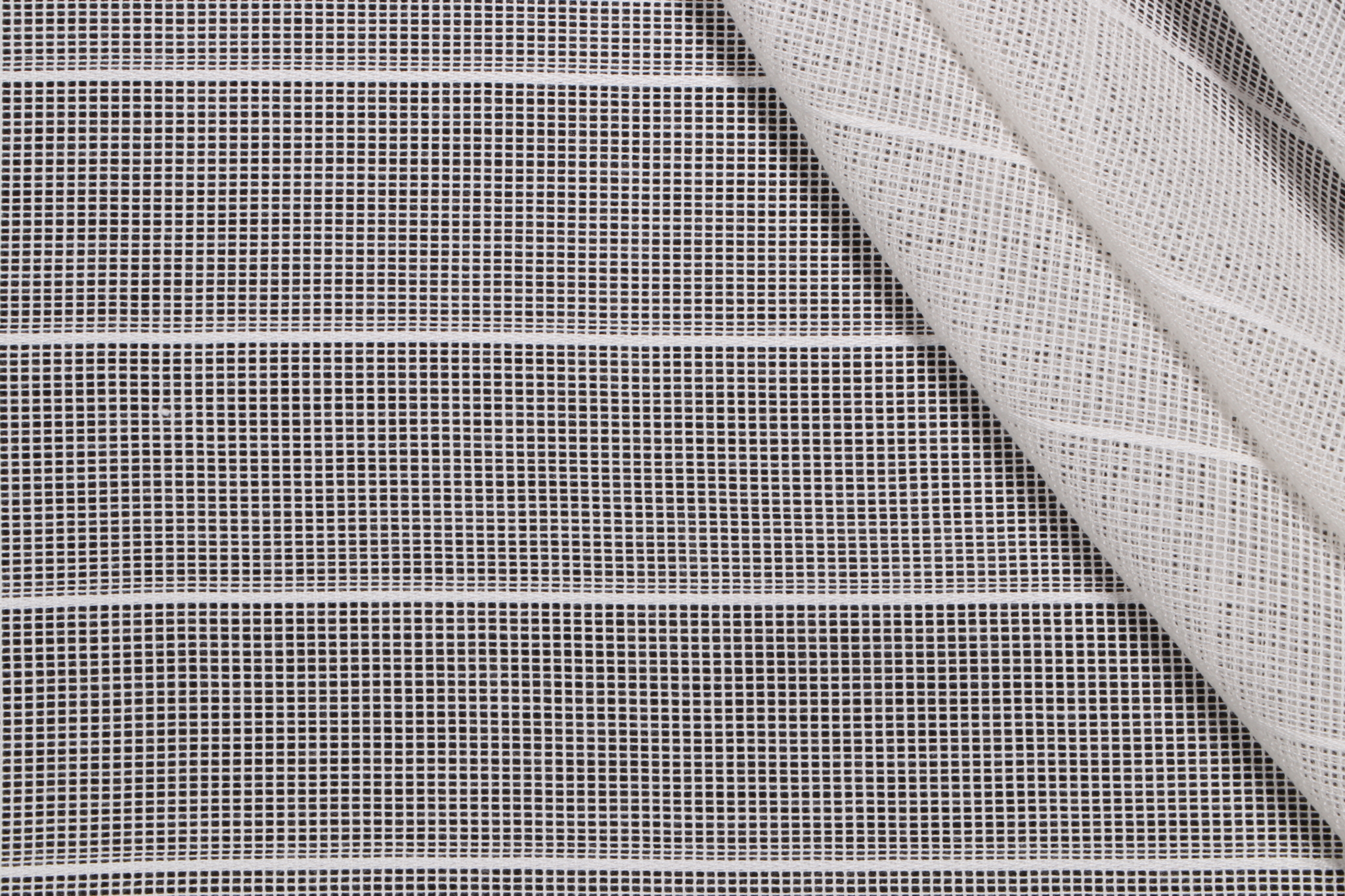 Scalamandre Sheer Stripe Drapery Fabric in White is a remnant. Fabric remnants refer to leftover pieces of fabric from production runs at manufacturing sites or pieces that remain from by the yard stock. The lengths of these remnants can vary from a few inches to several yards and are typically sold at a reduced price, since they represent remaining inventory.