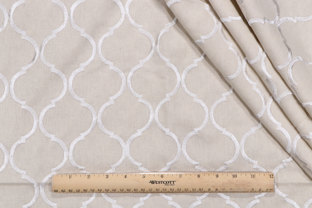 1.75 Yards Trellis Embroidered Drapery Fabric in Winter Details