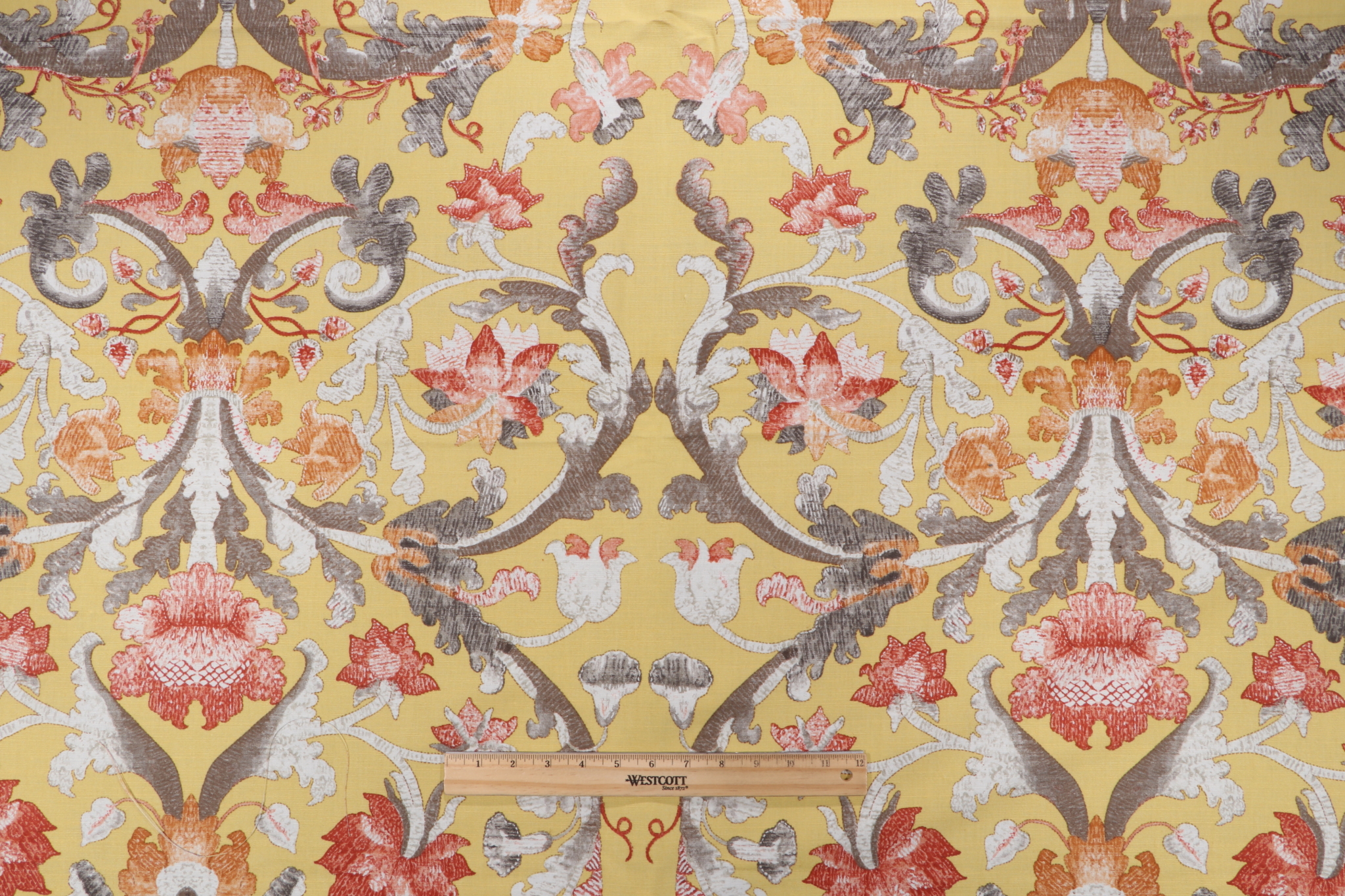 2.25 Yards Scalamandre Damask Printed Drapery Fabric in Yellow/Multi Details