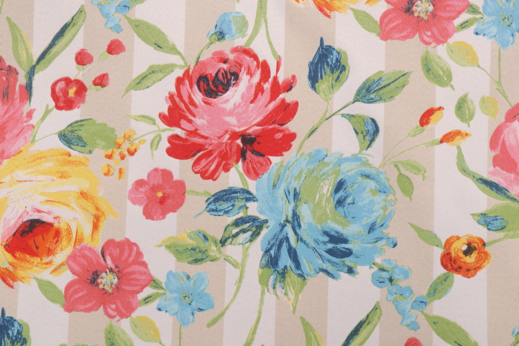 This printed indoor/outdoor fabric is perfect for any project where the fabric will be exposed to the weather. Uses include cushions, tablecloths, upholstery projects, decorative pillows and craft projects. This fabric has a slightly stiff feel but is easy to work with.