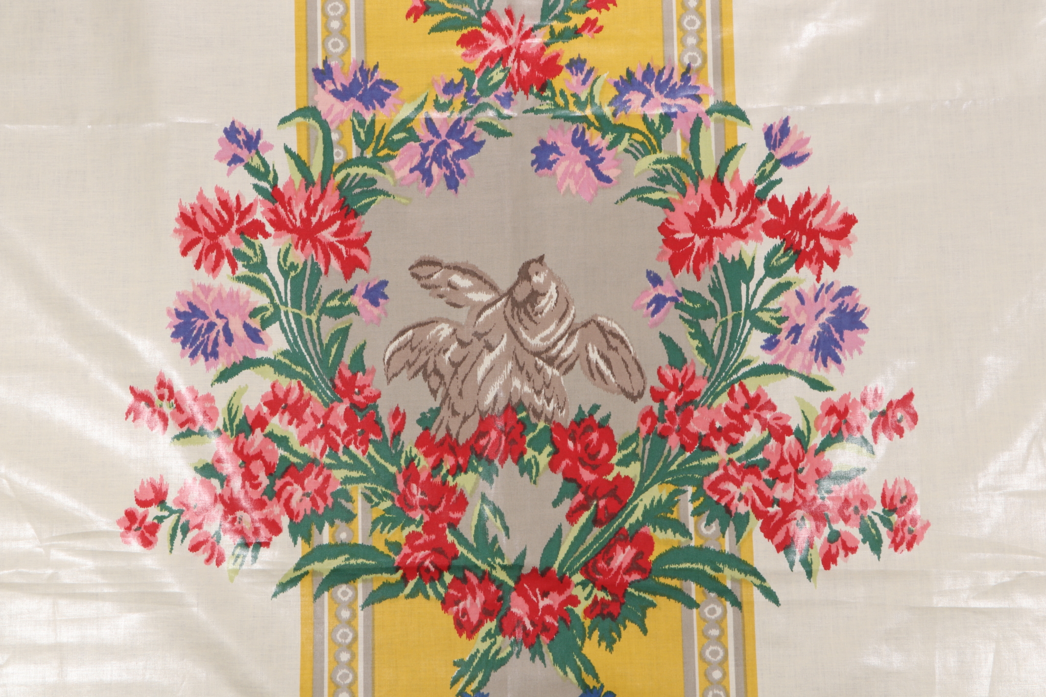 .63 Yards Old World Weavers Nancy Chintz Printed Polished Cotton Drapery Fabric in Creme Details