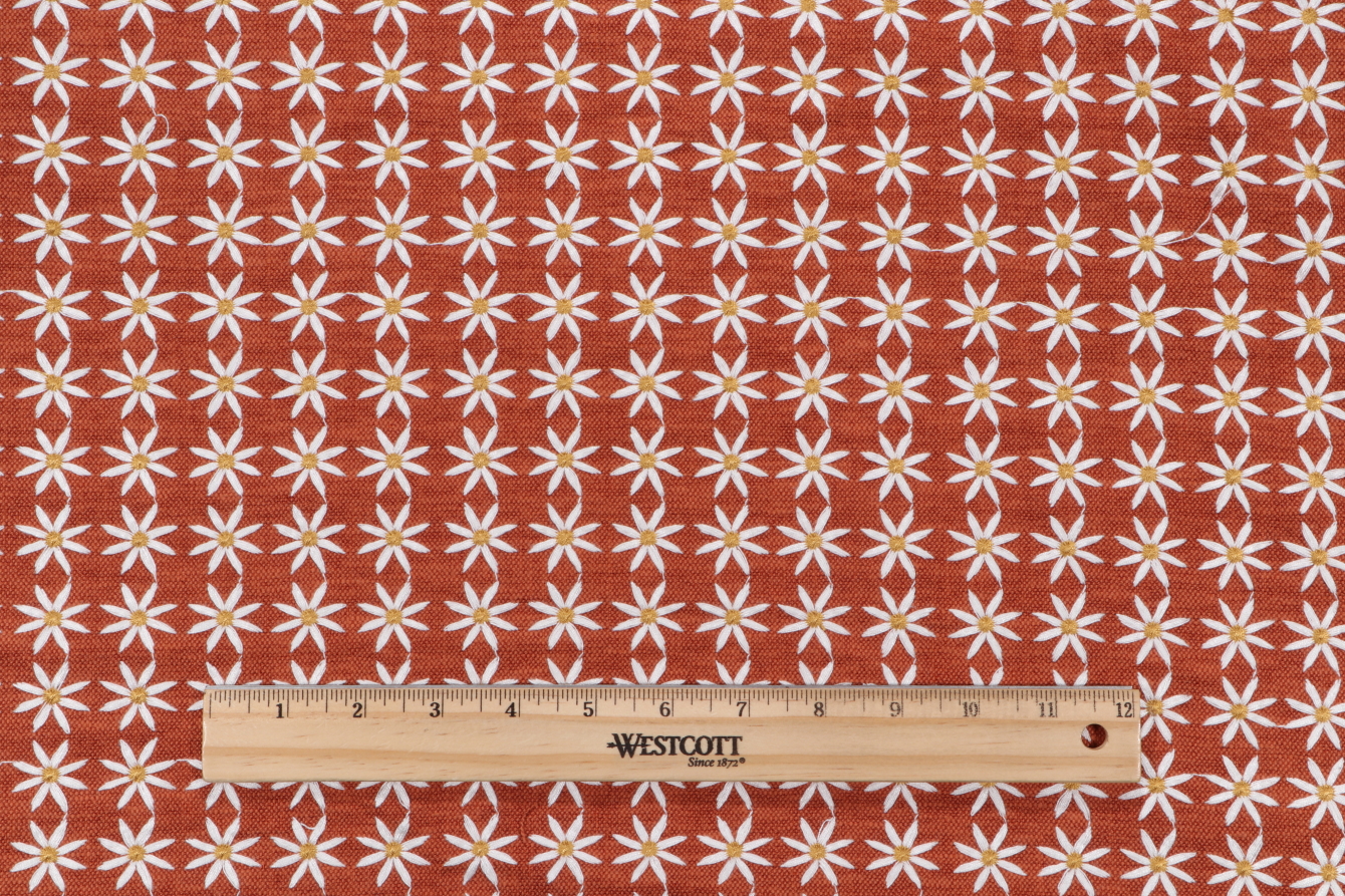 If you order a sample of PK Lifestyles Daisy Embroidered Drapery Fabric in Spice the size of the swatch you receive will be approximately 4" x 6". This is enough fabric to verify color and texture, but may not be large enough to capture an entire pattern.