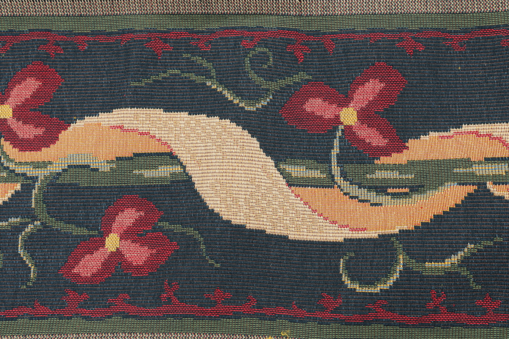 Scalamandre Millie Fleurs Border 9'' Tapestry Border Fabric in Multi is a remnant. Fabric remnants refer to leftover pieces of fabric from production runs at manufacturing sites or pieces that remain from by the yard stock. The lengths of these remnants can vary from a few inches to several yards and are typically sold at a reduced price, since they represent remaining inventory.